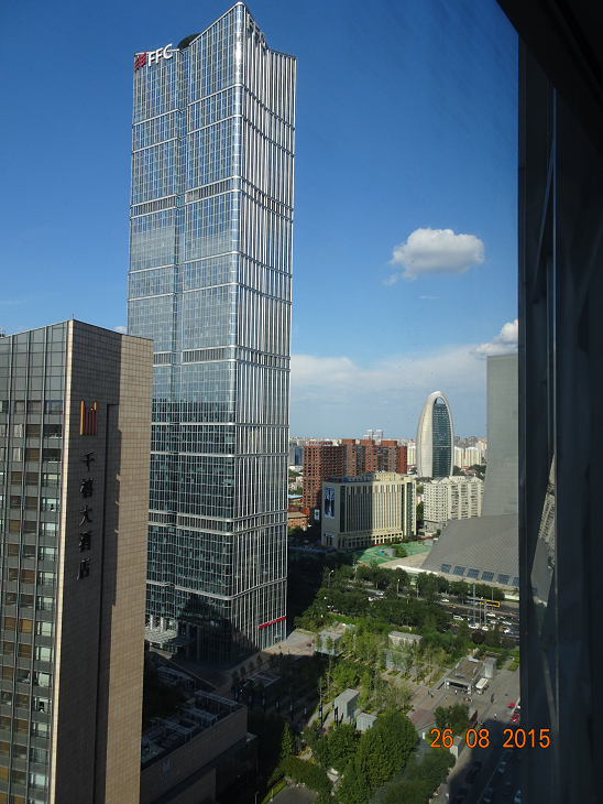 Un mal pour un bien : la Cité nous l’a été « interdite » ! En effet, se prépare le 70ème anniversaire de la victoire des chinois sur les japonais. Du coup, certaines usines ont été arrêtées et la circulation alternée mise en place. Du coup, nous avons bénéficié d’un beau ciel bleu ! En temps normal, la pollution empêche de voir à 100m et le ciel est gris…