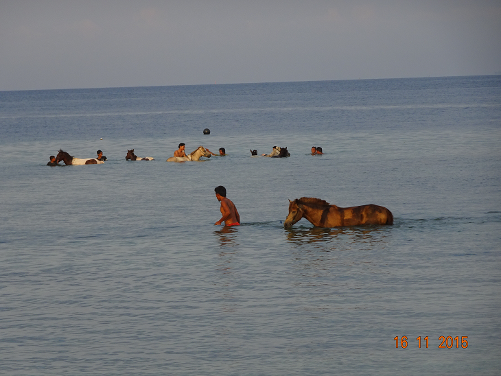 Cette pause nous la faisons sur l’île de Gili Air. Plus d’engins motorisés, uniquement des charrettes et des vélos !