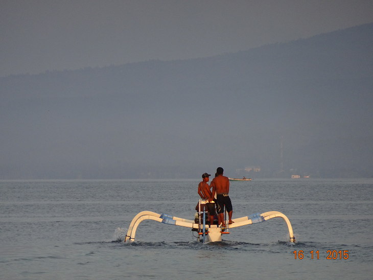 Les pêcheurs dans leur embarcation typique.