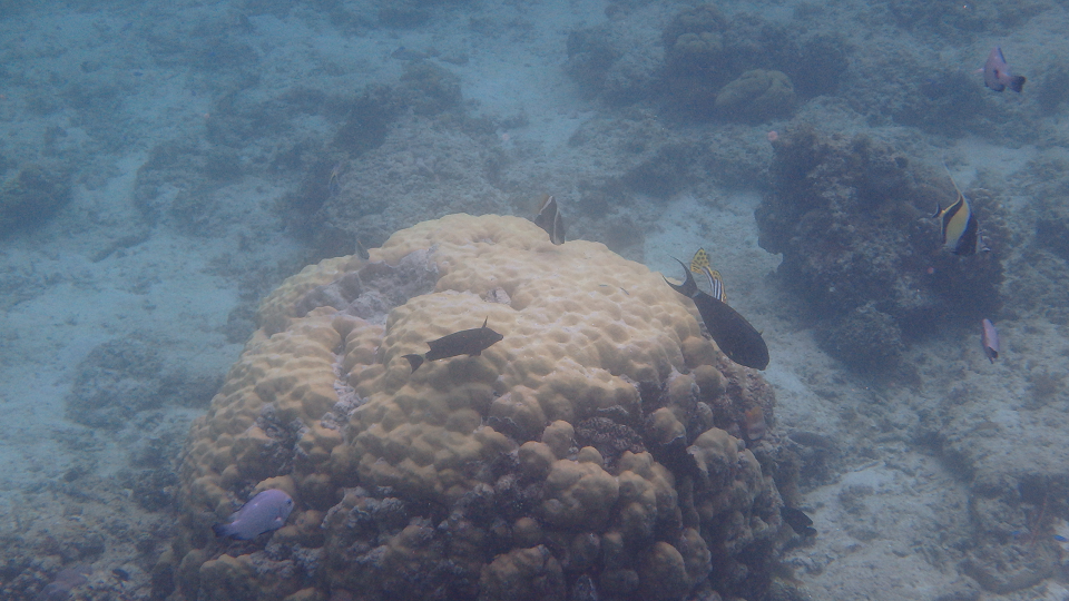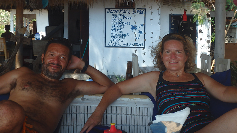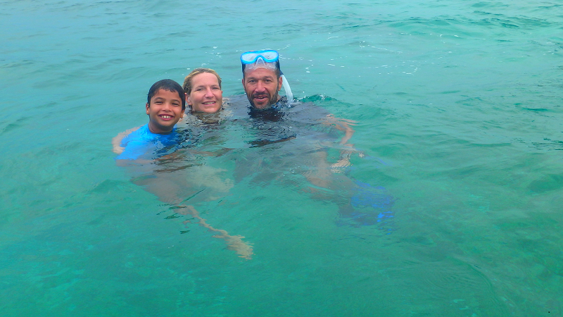 Nous passons notre temps dans ces eaux limpides, masque, tuba et palmes aux pieds à observer les fonds marins. On se régale de poissons et de fruits, la vie est douce !