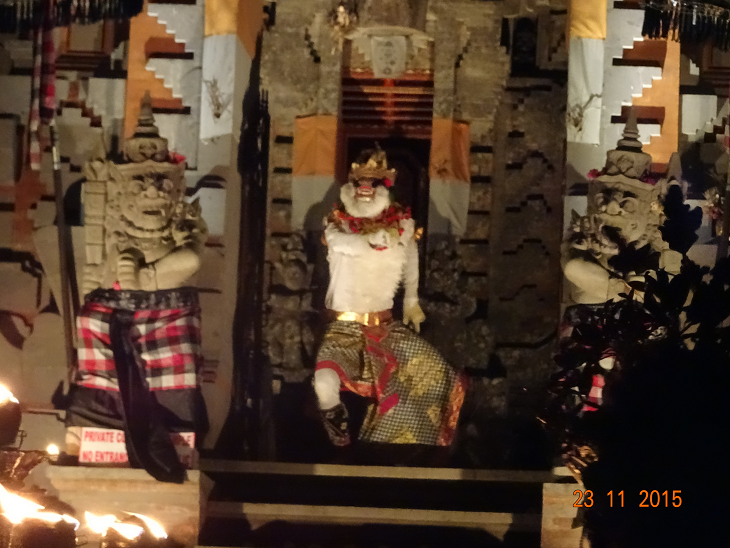 Pour finir cette belle journée, nous assistons à un incroyable spectacle de Kecak. Nous sommes dans un petit village à quelques kilomètres de Ubud, au milieu d’un temple. Là, plus de 70 hommes arrivent vers nous et se mettent en cercle en marmonnant des « Tchak a Tchaka.. ». Et au milieu de ces hommes quasi en transe, des danseuses merveilleuses dansent avec une précision incroyable. Arrivent ensuite des danseurs et les chants se poursuivent de plus belle…