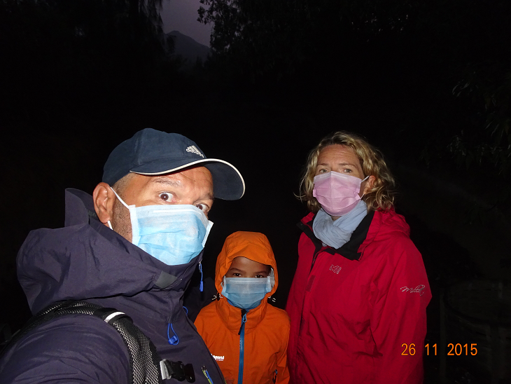 Levés à 3h du matin et après 1h de route, nous devons marcher 5km (dont 3km très pentus) pour atteindre le haut du cratère.