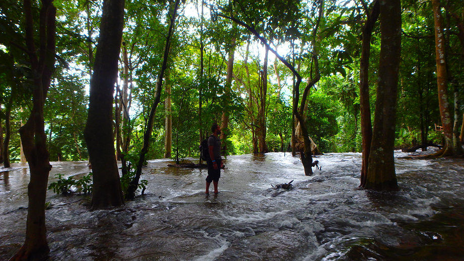 Nous grimpons le long des chutes à travers la forêt, c’est vraiment très beau.