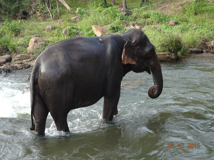 Un éléphant heureux de l'un de ses deux bains quotidiens.