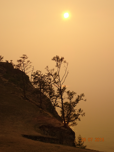 Malheureusement, des feux se sont déclarés à plusieurs endroits sur l’île ainsi que sur les berges du Baïkal. Du coup, toutes les excursions ont été annulées. Nous avons tout de même pu in extremis faire une belle balade en bateau hier toute la journée.