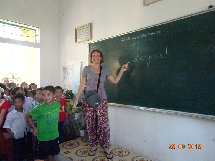 Nous avons eu un accueil formidable. Heureusement, Hang était là pour faire le lien en anglais afin de pouvoir communiquer ! Le vietnamien est une langue vraiment complexe avec beaucoup d’accents et de phonèmes difficilement prononçables pour nous !