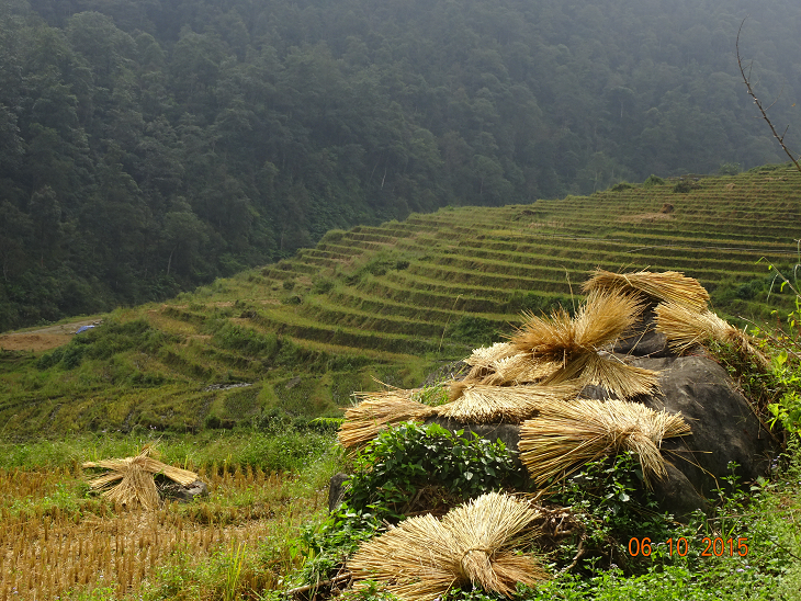 Nous décidons de faire un trek de 2 jours comprenant une nuit chez l’habitant. C’est la fin de la saison et le riz a été coupé. Les paysages ne sont plus verts comme sur les cartes postales mais restent très beaux. Nous traversons également des cultures de roses et de thé.