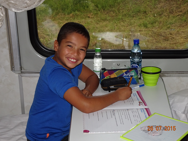 On attendait avec impatience ce moment où le temps allait s’arrêter pour nous pendant quelques jours… Comme ce fut bon de se laisser porter bercés par le train avec ce défilé de paysages  toujours aussi grandioses ! Nous étions un peu déboussolés car dans le train on vit à l’heure de Moscou. C’est d’ailleurs l’heure affichée dans toutes les gares (impossible d’avoir l’heure exacte du lieu où l’on se trouve).  Nous avions déjà 2 heures de décalage depuis Perm et nous nous apprêtions à en ajouter 3 de plus !