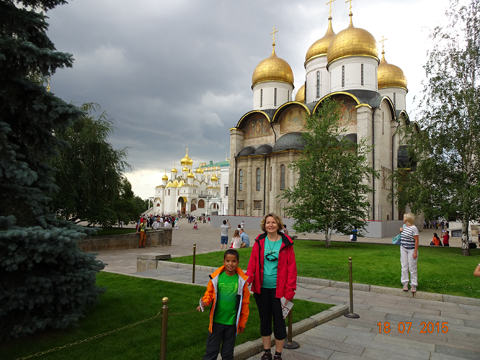 Nous sommes à nouveau éblouis par tant de grandeur et de beauté, de jour comme de nuit : la Place Rouge, le musée d'Histoire, la Basilique de Basile le Bienheureux et bien sûr le Kremlin... La ville est immense et nous n'en avons vu qu'une infime partie. Demain, nous arpenterons des quartiers plus éloignés du coeur de ville. Aujourd'hui, nous sommes allés à une centaine de kilomètres de Moscou, à Serguiev Possad, magnifique lieu de culte. Nos journées sont bien chargées, nos mollets bien sollicités, mais Raphaël suit bien le rythme. Pour le moment, notre TDM démarre quand même confortablement. On prend des ressources pour la suite.