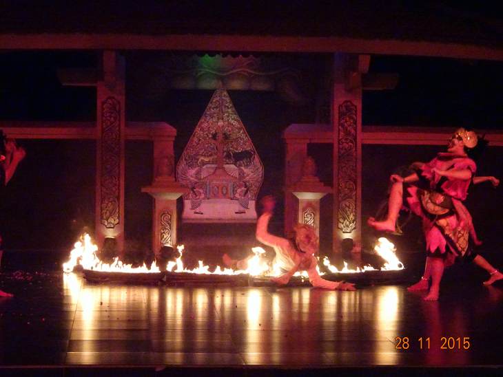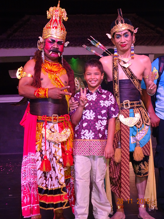 Nous sommes allés voir un beau spectacle de danse javanaise. C’était l’histoire de Sinta, la princesse aux longs cheveux, de Rama son mari, de Laksama son frère, et du roi Ramayana qui enlève Sinta.