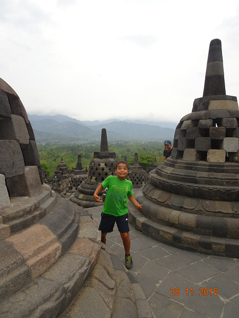Nous avons vu un magnifique temple qui fait partie des merveilles d’Asie du Sud-Est : le temple de Borobudur. Tout le monde voulait nous prendre en photo, les gens étaient sympas.