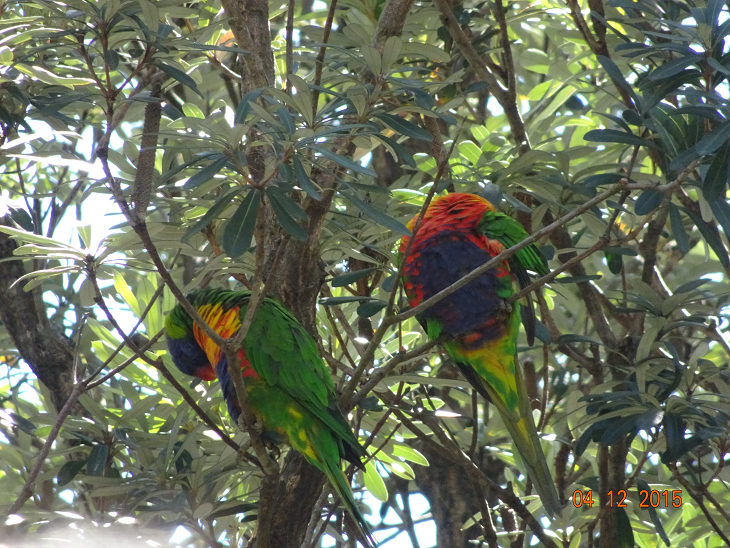 Tous les matins dans les arbres, nous pouvons observer des cacatoès, des perroquets multicolores et des rosellas.