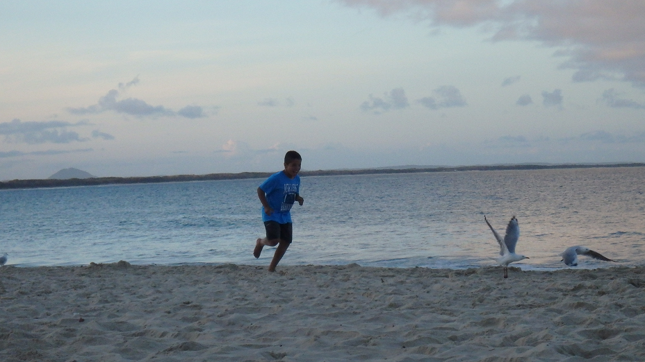 Sur l’île (Lady Musgrave island), il n’y avait qu’un seul prédateur pour les oiseaux, ce sont les fruits des arbres. Des espèces de pommes de pin collantes tombent au sol, et quand un oiseau passe, il reste collé et finit par mourir. On en a vu un pris au piège, mais c’était interdit de le sauver, car l’île et le lagon sont des zones protégées et l’Homme ne doit pas toucher aux animaux car après les animaux ne sauront plus se débrouiller seuls.