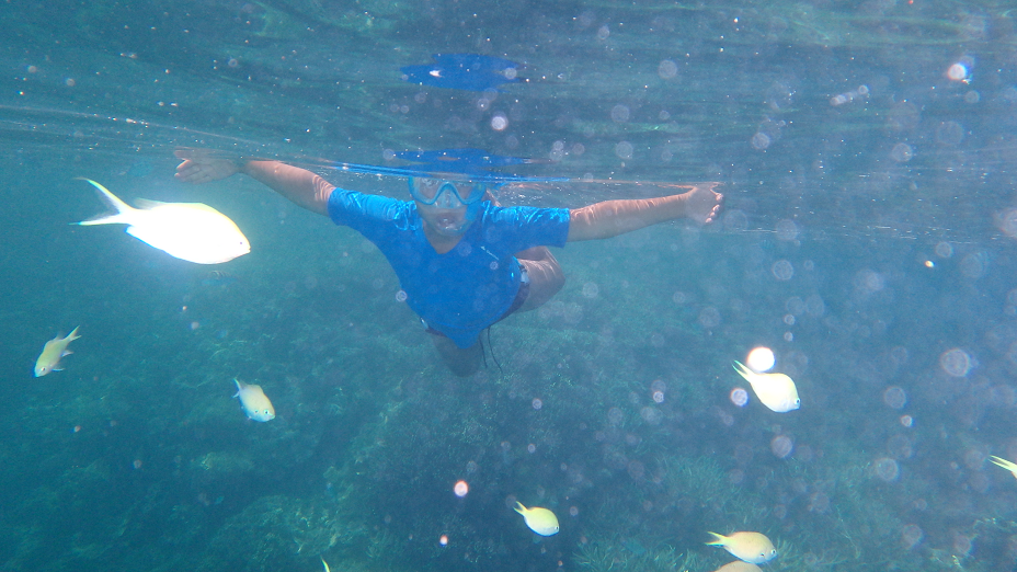 On a fait du snorkeling : on a vu des beaux coraux, des étoiles de mer, de beaux poissons et une grosse tortue. Puis, nous avons pris un bateau à fond de verre pour rejoindre une île et observer les fonds marins. On a vu deux raies…
