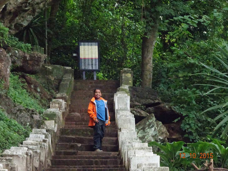 Nous avons fait du bateau pour aller dans une grotte toute petite, on a eu une grosse frayeur : un serpent est tombé d’un arbre trois marches plus loin que papa. J’ai eu la peur de ma vie, heureusement il a filé à une allure impressionnante pour se cacher derrière les fougères.