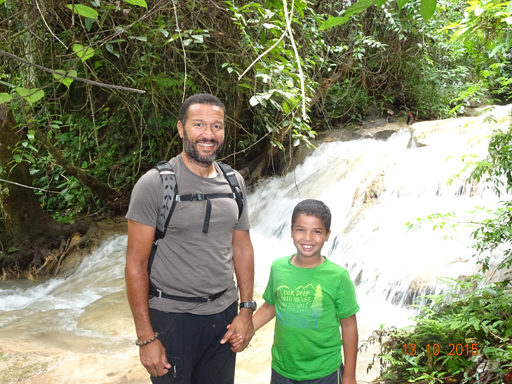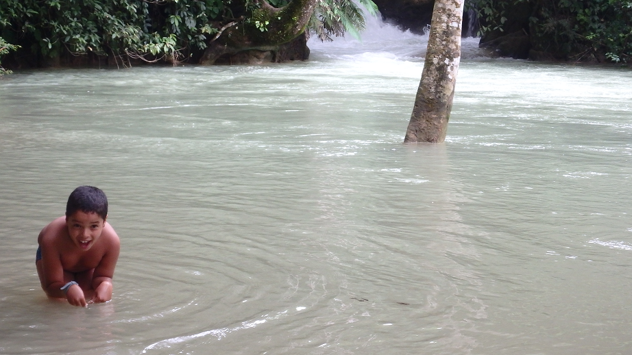 On est allés dans des jolies cascades. J’ai grimpé tout en haut de la cascade et on s’est baignés avec Charles et Mickaël, c’était trop bien !