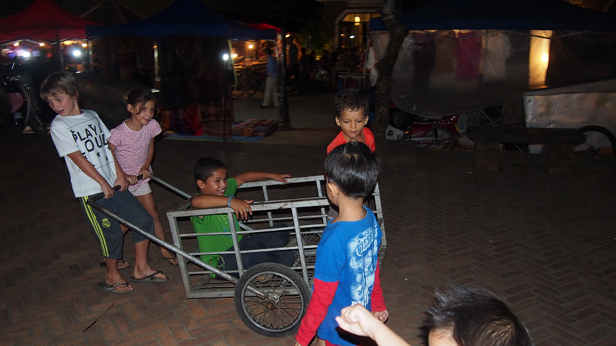 Cette fois, j'ai rencontré beaucoup d'enfants "tourdumondistes" comme moi et on s'est beaucoup amusés (Ici avec Raphaël, Pauline, Jonas et des enfants Laotiens...)