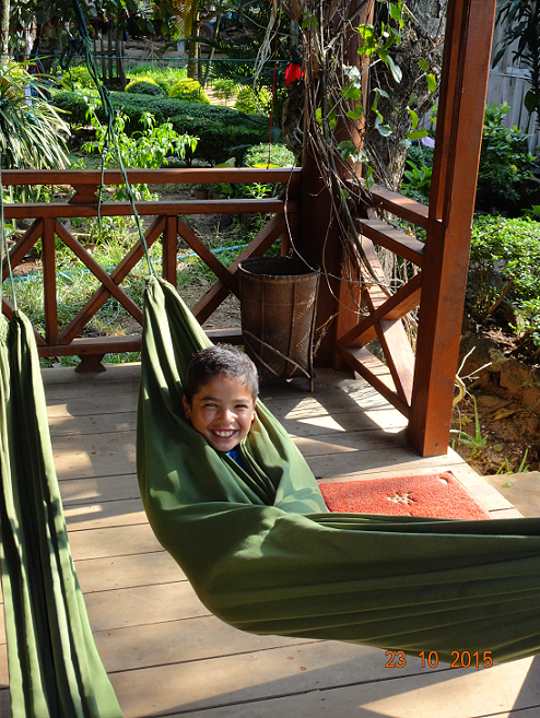 A notre arrivée à Tad Lo, je teste le hamac...