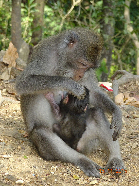 Nous sommes allés sur une route qui traverse la forêt des singes. Il y en avait partout, on avait le droit de leur donner des bananes. J’avais un peu peur quand Maman a donné la première banane, le singe était un peu excité.