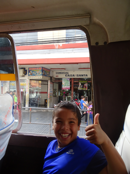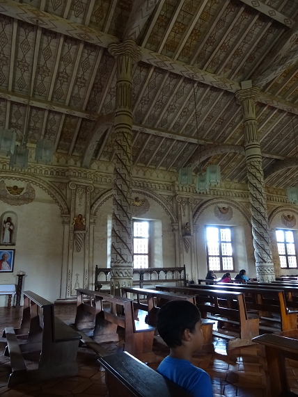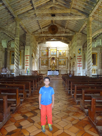 Nous sommes arrivés en Bolivie à Santa-Cruz. Nous prenons des petits bus que l’on appelle des « micros » pour nous promener dans la ville. Il y en a partout, on peut monter et descendre quand on veut. Ça me plaît beaucoup et j’aime m’asseoir à côté du chauffeur. Nous avons pris un grand bus pour aller à 4 heures de route voir des missions jésuites. Les missions sont des villages où les missionnaires (des prêtres) espagnols venaient pour convertir les indiens au christianisme. Au début, les indiens n’étaient pas d’accord. Mais dans cette région, les portugais capturaient les indiens pour en faire des esclaves et les faire travailler dans les mines. Finalement, les indiens ont préféré la protection des missionnaires même si la vie était dure et ne ressemblait plus à leur vie de liberté. Pour attirer les indiens, les prêtres jouaient de la flûte et du violon (de la musique baroque, c’est une sorte de musique classique de l’époque). Les indiens aimaient cette musique et dans les missions jésuites de Chiquitos, les indiens ont appris à jouer de ces instruments. Les églises sont très belles et anciennes, elles ont été construites en 1753 !