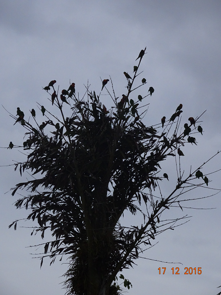 Au camping, l'impressionnante et bruyante colonie de perroquets.
