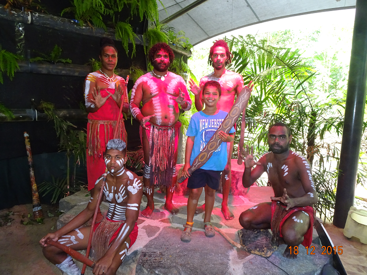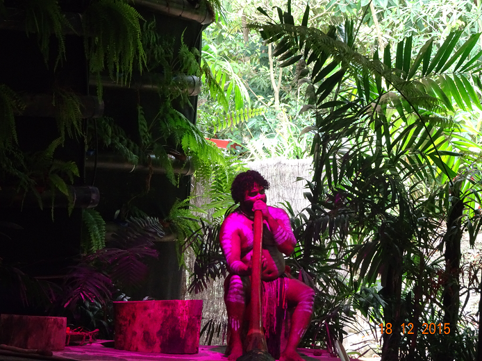 C’était les premiers habitants de l’Australie, avant l’arrivée des anglais. Ils vivaient en clan et chaque clan avait sa propre langue. Ils vivaient dans le bush (ou la forêt tropicale) et devaient savoir faire plein de choses pour survivre avec tous les animaux. On nous a montrés comment se nourrir et se soigner avec les plantes de la forêt, comment chasser avec des boomerangs différents. C’était bien parce que nous avons essayé aussi. Nous avons vu des danses. Ce que j’ai préféré c’est le Didjeridoo . C’est un instrument fait à partir d’un tronc d’arbre. Ce qui est impressionnant, c’est le souffle qu’il faut et le son dure très longtemps et imite le bruit des animaux. J’ai beaucoup aimé les peintures.