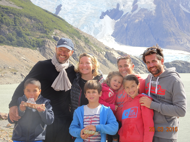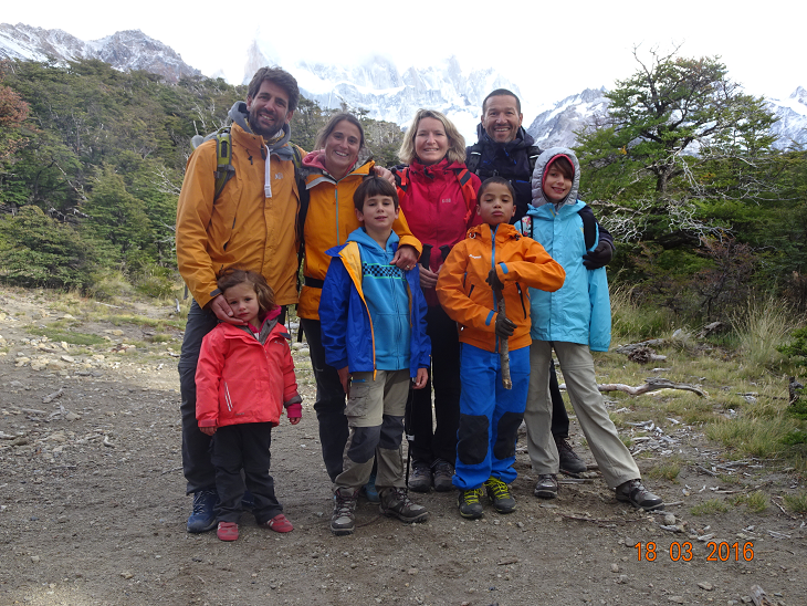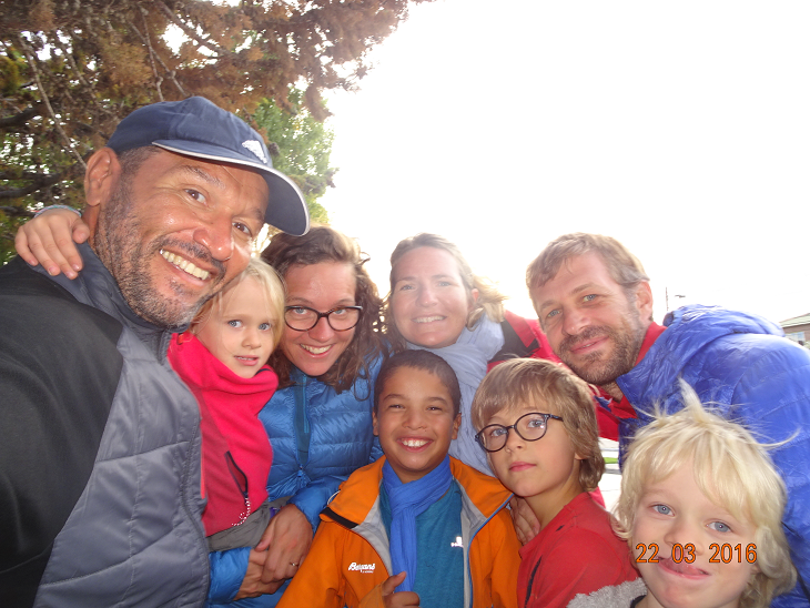 Et dès notre retour à El Calafate, nouvelle rencontre d'une famille tourdumondiste avec 3 enfants (décidément !), les Carayol de gauche à droite : Anina, Vanessa, Melvin, Simon et Esteban.