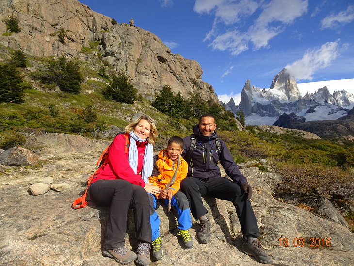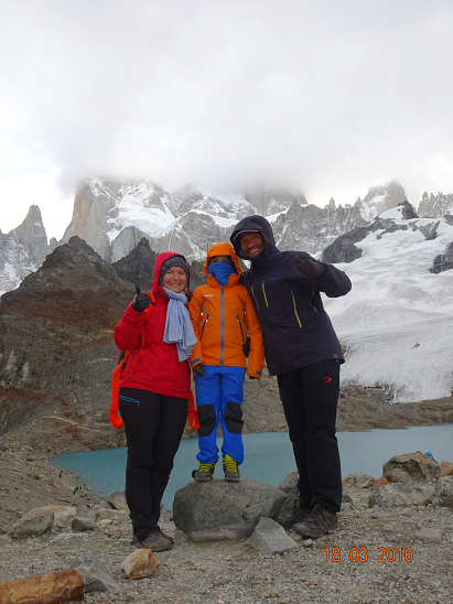 Le dernier jour, nous sommes repartis en rando en familles à la laguna Torre, 18h de marche pour 18km. Les derniers kilomètres furent difficiles pour Raphaël, mais il y parvint !