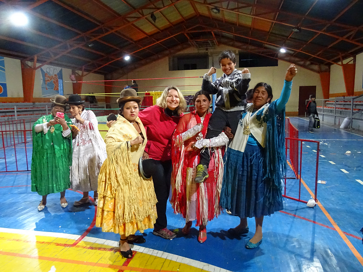 Nous avons enchaîné des levers à 5/6 heures, des journées de 4x4 et une nuit de bus. Nous sommes épuisés lorsque nous arrivons à 5 heures du matin à La Paz. Nous prenons le temps de nous reposer mais nous répondons à l’appel de la ville ! Raphaël s’est vu donné un prospectus sur les « lutchas de cholitas ». C’est l’attraction du dimanche, les femmes en tresses et jupes traditionnelles s’affrontent sur le ring ! Je me laisse embarquer malgré moi, Olou préférant aller assister à un match de foot ! Au final, c’était assez amusant et Raphaël est ravi. Nous nous séparons à nouveau. Mon chéri a décidé de faire la descente de "la route de la mort" en VTT. Raphaël est très inquiet pour son papa et s’est même réveillé 2 fois cette nuit-là pour le réclamer ! Pendant ce temps, nous visitons le musée des instruments et le musée d’ethnographie et du folklore ainsi que les églises du quartier. On est bien contents de retrouver Olou en un seul morceau !