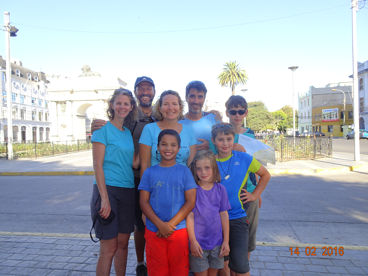 Avec de gauche à droite, Aurélie, Sébastien, Mila, Zachari et Titouan : des tourdumondistes à vélo, grand respect !