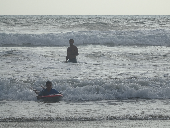 Nous devions passer 3 jours ici, mais cela fait une semaine que nous profitons de l’océan et du soleil. Raphaël s’éclate dans les vagues et fait du bodyboard. Il trouve toujours plein de copains. On est bien et on profite de ces derniers moments de voyage. On se la coule douce…