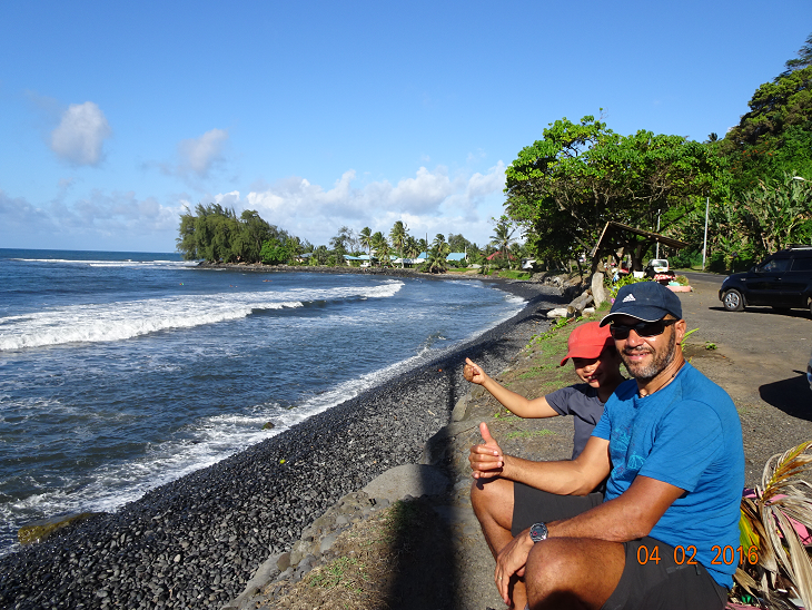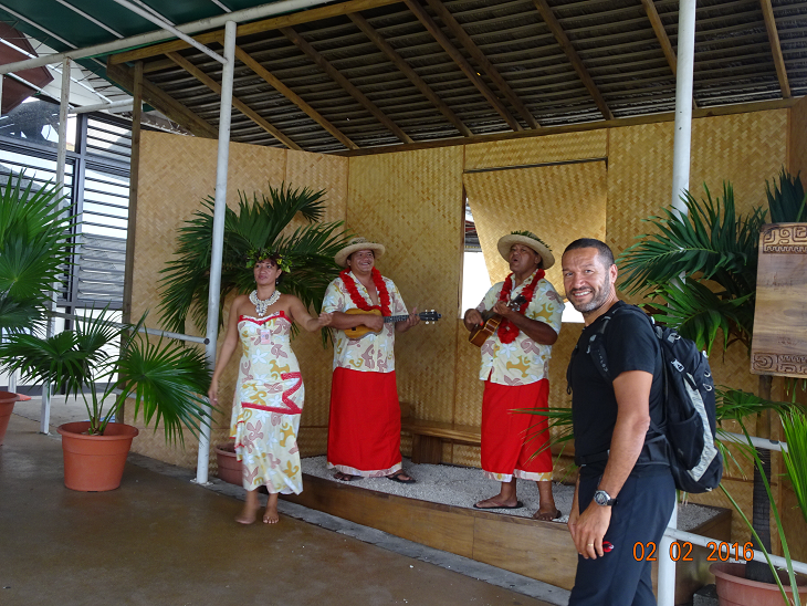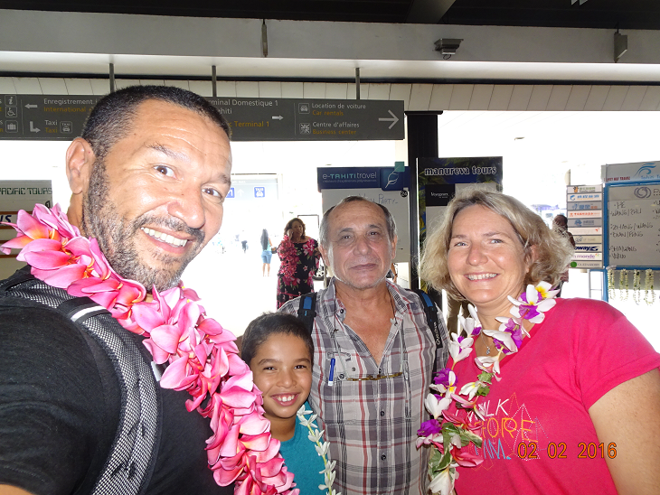 Après le jour le plus long (plus de 36h, décalage oblige !), Dominique, le Papa de Palou, était là pour nous accueillir selon la tradition : avec de beaux colliers de fleurs.